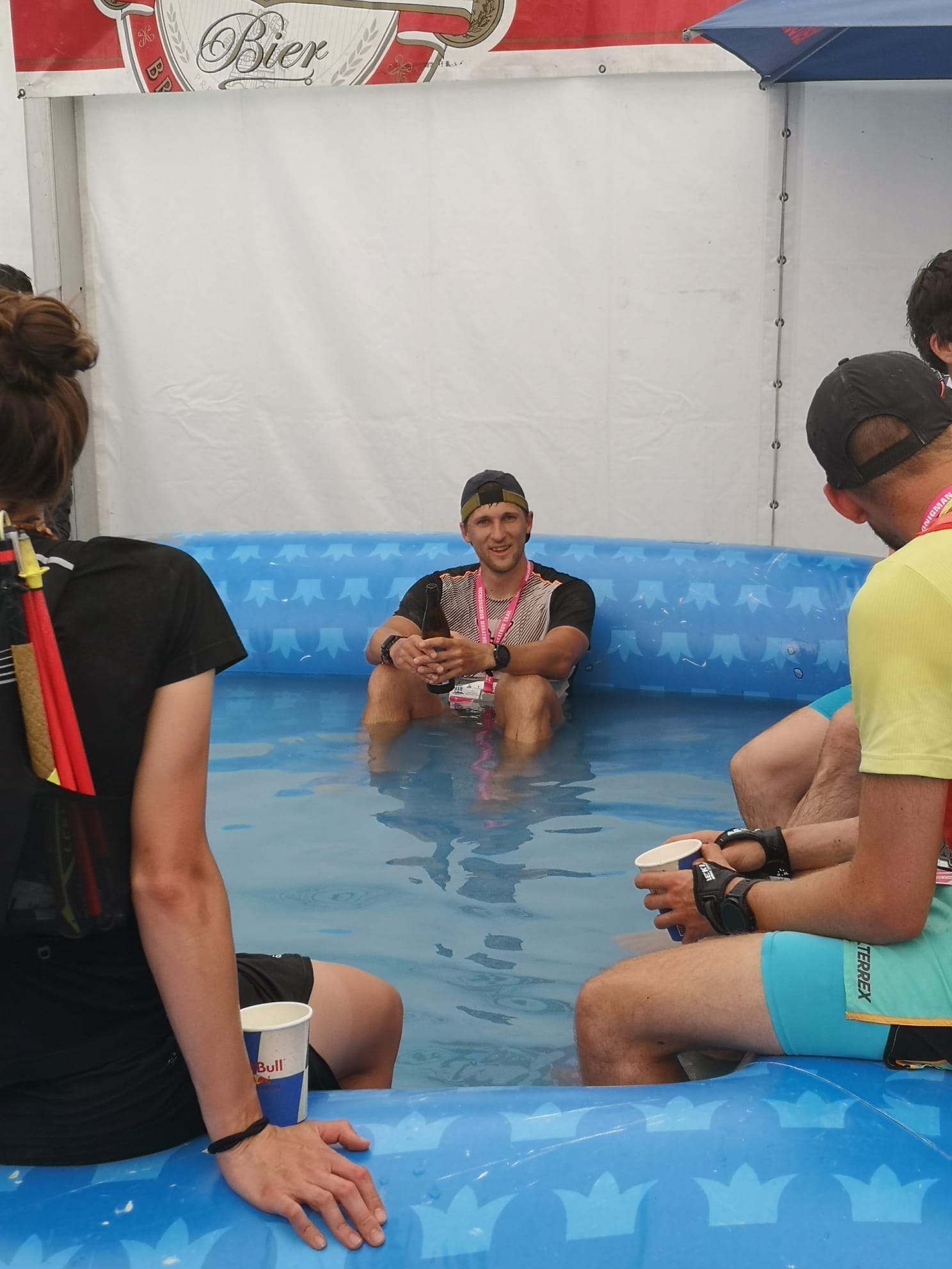 Nach 7:06 h war Benjamin schon wieder im Ziel und konnte als erstes den Hochkönigman – Pool mit Bier genießen. Danach kam Alex mit 7:25 h gefolgt von Andi mit 7:30 h.