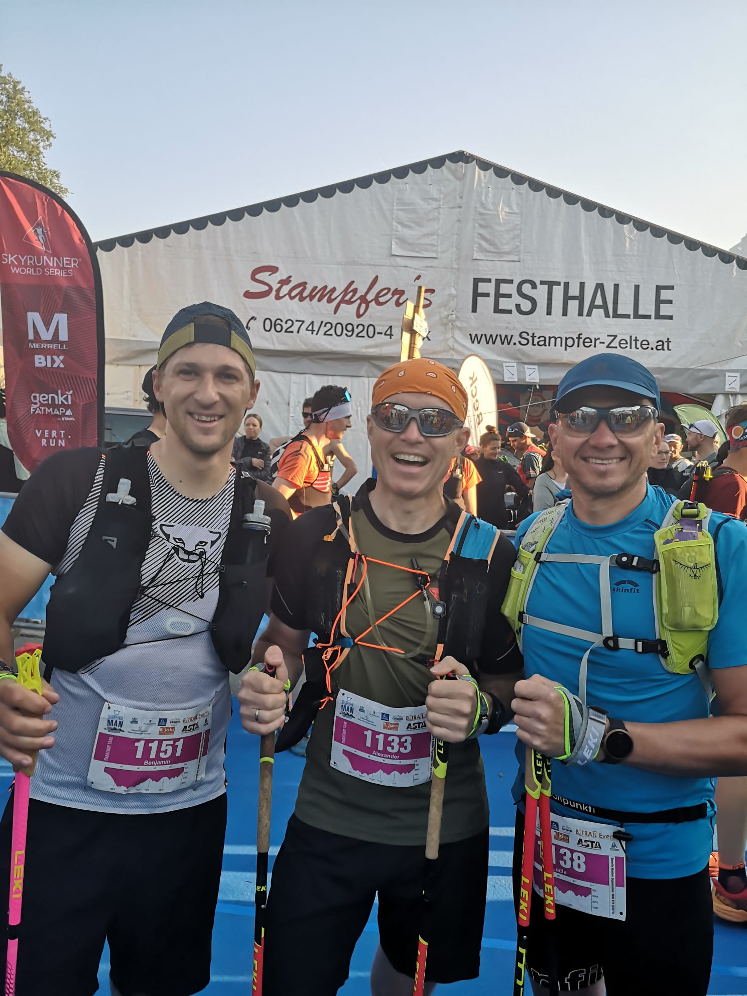 Den Marathon Trail nahmen Benjamin Schmidradler, Alexander Pruckner und Andreas Haag in Angriff. Hierbei galt es 49,8 km mit 3.070 hm zu bewältigen.