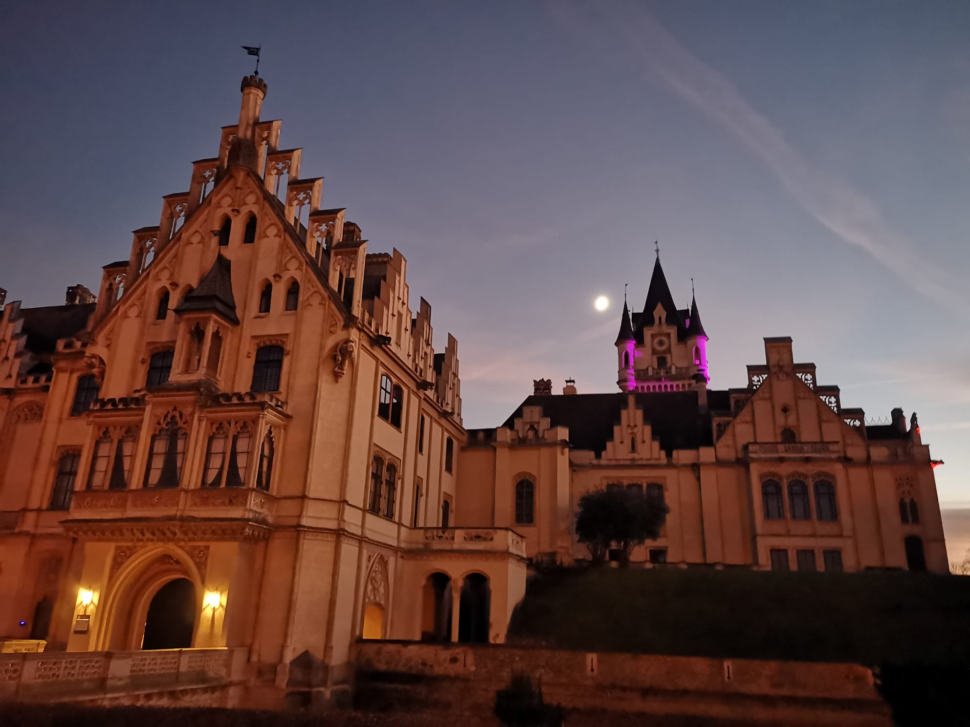 Die Strecke führte auf Schotterwegen etwas geschupft am Schlossgelände zwischen Wiesen, Wälder, Schloss und durch den beleuchteten Christmas Garden. Auch Schafe und ein ziemlich schnelles Kamikaze – Reh konnte man bei den frühlingshaften Bedingungen sehen.